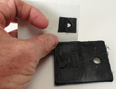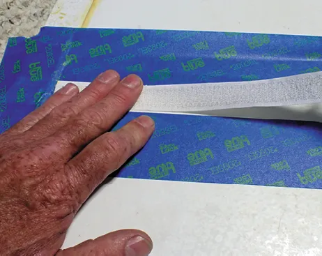 Obviously, effectiveness will depend on the surface profile. If it’s too lumpy, there could be adhesion problems. We tested on 1708 biaxial cloth that had been neatly hand rolled, but not vacuum bagged or given a seal coat. Tape Primer 94 did the trick, as the foam sheared before the bond let go.