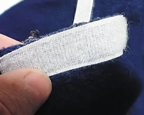 Priming porous fleece with 3M Super 77 helped keep peel-and-stick Velcro tape stuck to this fleece blanket for five years.