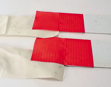 3M Tape Primer 94 did not markedly improve bonding on porous surfaces. This fleece hem has no stitching; it is glued with 3M Super 77.