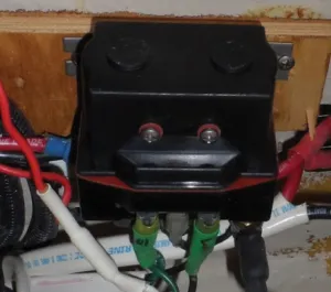 2. High-current solenoids (shown here) and AC circuit boxes are often sold without the protective covers required to protect them and prevent shorts.