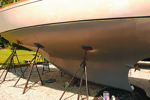 Another option is using a chemical paint stripper like Peel Away or Franmar Soy Strip (PS, October 2011). Chemical paint strippers break down the paint’s adhesive bond on the hull and make it easier to scrape down to clean substrate that can be repainted. This is messy and noxious work, but it’s less back-breaking than sanding. We’ve found that the strippers performance varies by boat (and temperature), so review the articles on strippers to see which one best fits your scenario. And if you’re not happy with one product, you might want to try another before giving up.