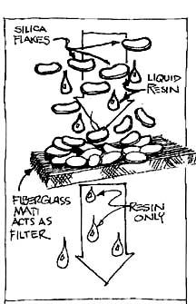 Ironically, the first layer of laminate is best made of chopped glass – a technique that was frowned upon in the days when many builders associated quality construction with a hand-laid and rolled first layer made of mat. In fact, the 1- to 1-1/2-oz. mats that were used caused a lot of the silica filtering problems. Those problems are drastically reduced if the first layer is shot on with a chopper gun. In a double irony, many builders operate that way these days-not necessarily because the mat might cause blisters, but because chop is faster and cheaper to use.
