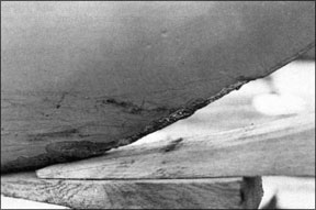 More extensive damage to encapsulated keels, requiring structural fiberglass repair, will be dealt with in another article. How do you tell if you’ve got structural damage? As a rule, any time the shell is ground away so that any of the ballast is exposed, or any time laminate is exposed over an area’ greater than a square foot, you probably need to do more than patch with putty.