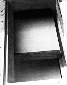 The next set of shelves should be just high enough above the ice shelf to clear the block of ice. About 10” should be right. Once again, attach a pair of teak cleats to the inside of the box and fabricate a shelf.