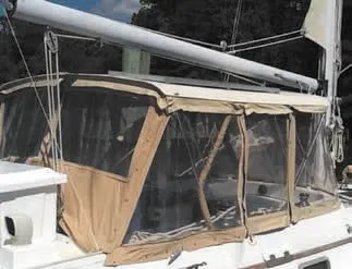 It was with some interest that I read of Bill Hudsons quest for a workable hard top for his catamaran Half Moon. In 2005 I was faced with the same problem. Winter had seriously damaged the aging Bimini and dodger on our Pearson 422 Autumn Wind. I wanted a hard top upon which I could mount solar panels, and I wanted a dodger with better visibility. Furthermore, I did not want to spend even half the quoted cost of having the job done commercially.