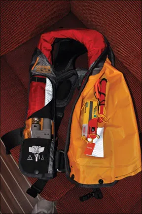 According to Kannad parent company, Oriola, they had no problems fitting the R10 inside off-the-shelf inflatable PFDs (including the West Marine Offshore PFD and more than a dozen other American life jackets) during pre-production and sea trials. Some fit right-handed, some left-handed, depending on where the oral tube lay inside the outer casing, Oriolas Bill Eastwood explained.