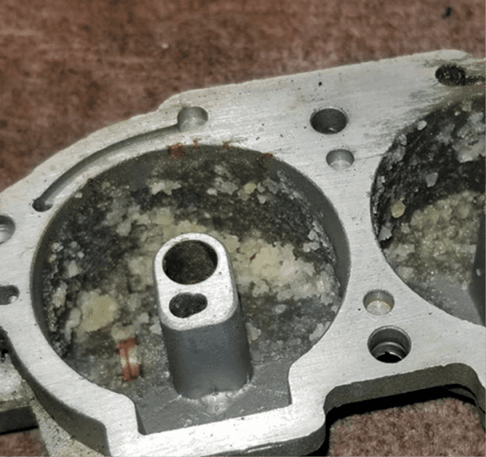 Please see the attached pictures of the inside of the carbs of a 2004 Yamaha 150 hp. two-stroke that I dismantled a few weeks ago. The boat was afloat and the motor was left tilted up for three months and had been run on E10 fuel with no fuel stabilizer. All three carbs were like this inside. Needless to say the motor would not start, which is why I was contacted by the owner. I have seen a lot of E10 damage in carbs but this is some of the worst I’ve seen!