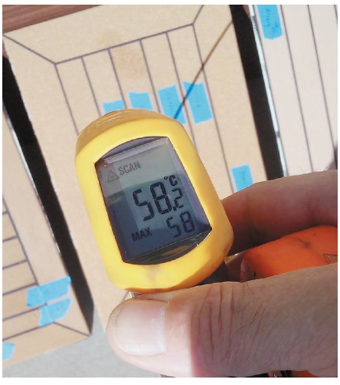 Readers familiar with the report will remember that we tested the temperature of these faux teak surfaces in two ways. First, we had three testers feel each surface with their hands, keeping it on each surface for 30 seconds. The samples were blindly paired against each other, round-robin style, and then ranked. The second way we checked temperature was by recording the surface temperature with a Fluke infrared thermometer; these readings were the temperatures listed in the articles accompanying table.