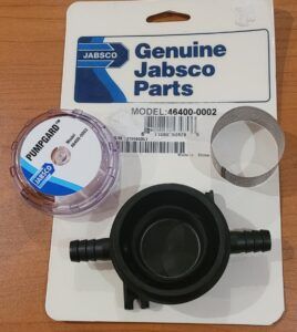Just after the three-way valve, I recommend installing a serviceable water filter, such as the Jabsco Pumpgard 46400-002 which comes with a serviceable stainless-steel filter and a see-through cover for quick and easy inspections.