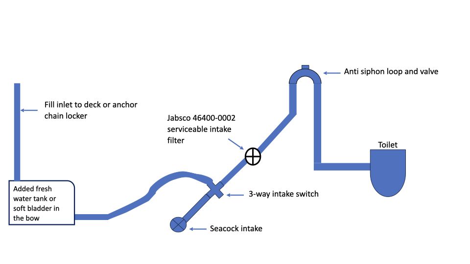 By the way, if you happen to be in salt water and flush overboard, adding a dedicated freshwater tank for your toilet(s) will also help control odors and greatly reduce toilet component and discharge hose decay as you would be flushing out fresh water. Thus, reducing the frequency of servicing the toilet components by quite a bit.