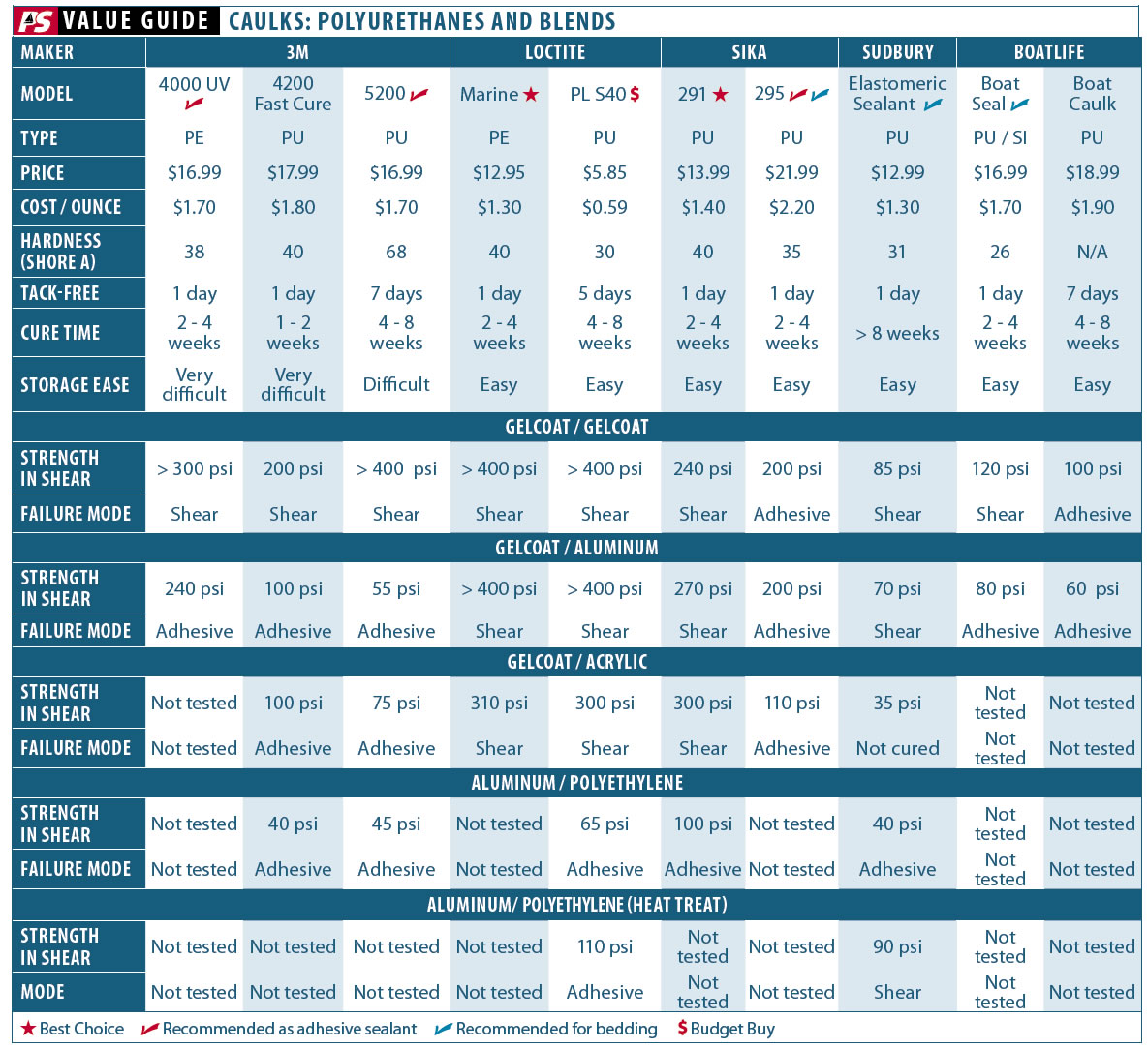 We recently launched a new evaluation of marine adhesives and sealants. There is no single caulk that works in all of these cases, so its impossible to declare a single Best Choice adhesive, but we decided to at least put some numbers on paper to guide you in your choices.