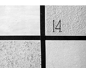 After that the entire test panel was sanded with 180-grit paper and thoroughly vacuumed. At that point the smooth side of the test panel was finally ready for layout. Before applying the various mixtures, we segmented the panel into 14 different sections using 3M Long-Mask tape.