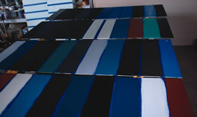 The paint samples were applied to 6-foot-by-2-foot fiberglass panels for testing. Testers follow the makers’ instructions for preparation and application. There were 11 samples per test panel. All but two samples had two coats of paint.