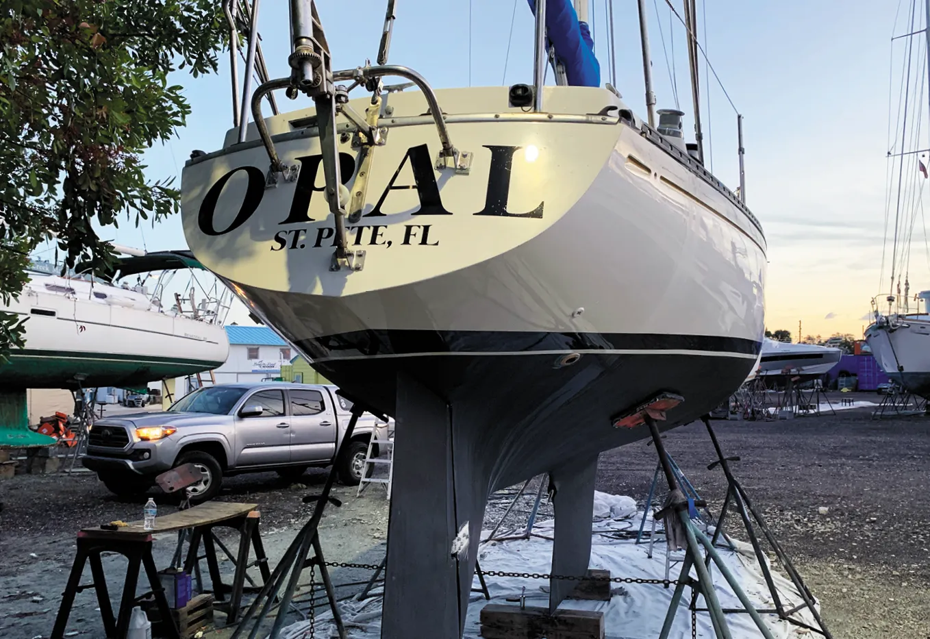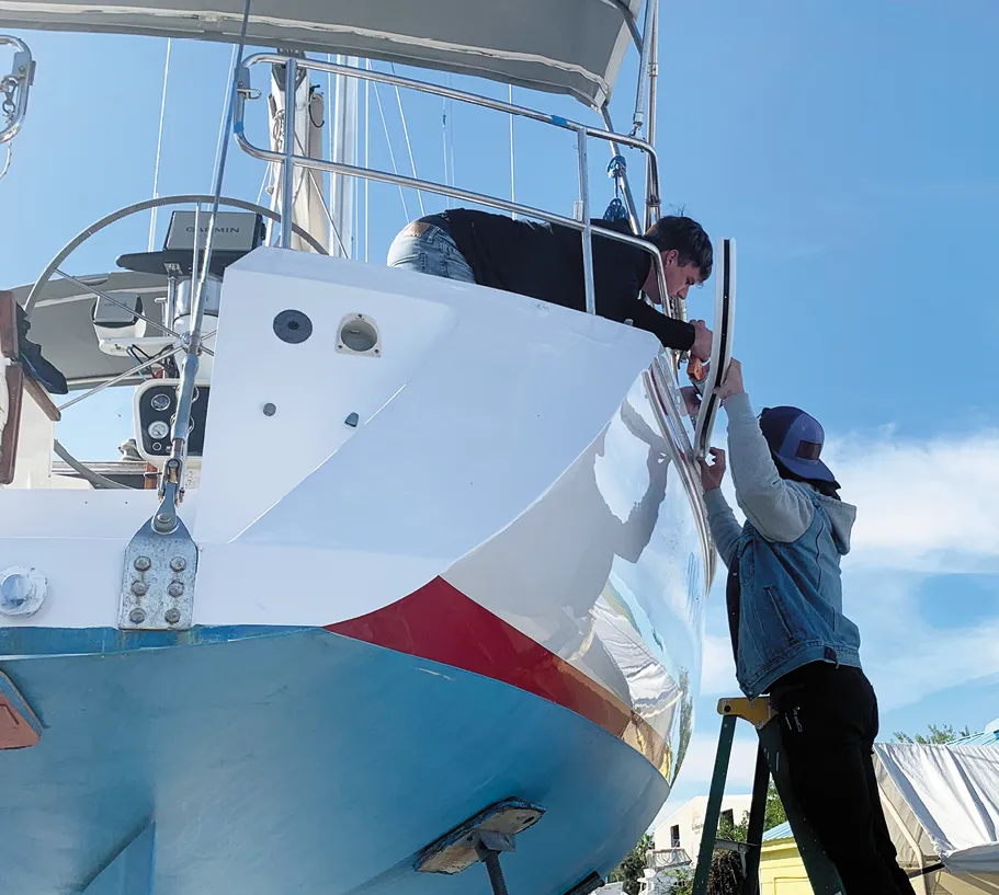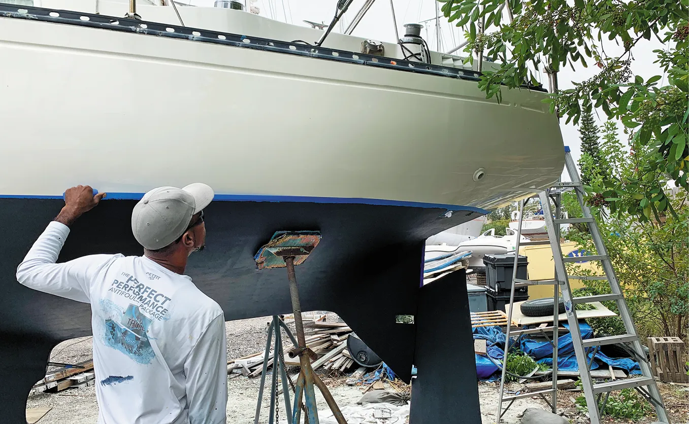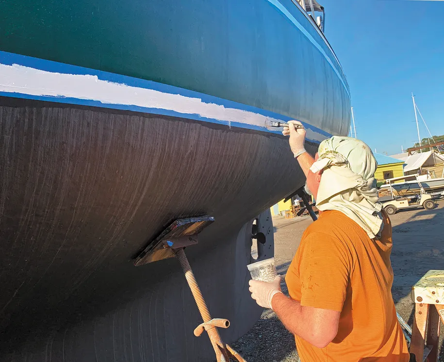 Some sailors suggest using a one-part LPU paint for the bootstripe because you will be repainting it when it gets damaged. Also, if you use a one-part paint, you only must keep on hand a quart of paint and the reducer (thinner) for touch ups. With a two-part paint, you need a third component—the activator. The one-part LPU is also not as hazardous to handle. But the prep work is the same for both paints and the two-part Awlgrip is vastly more durable (see “Topside-Paint Endurance Test 3-Year Checkup,” PS December 2012).
