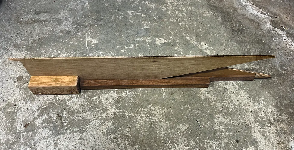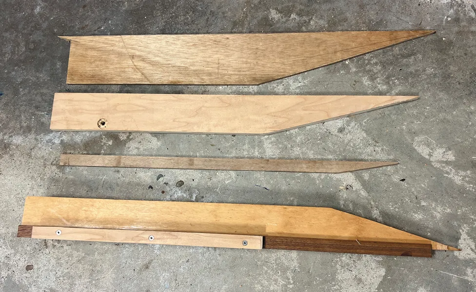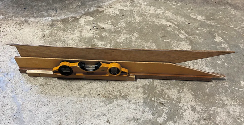 An adjustable bootstripe jig can be as simple or complicated as you want it to be. I have refined mine over the years to be easy to use with my hull. Once you understand how it works, you’ll be able to use a few scraps of wood to make your own. In addition to some scrap wood and some wood glue, you’ll need a saw, a drill, and a router or skill saw—although you can manage without the last two in a pinch. The dimensions will vary depending on the boat and available wood. Here’s how I made mine.