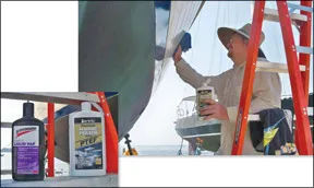 A surprise finisher was Flitz Waxx Wax Protectant, a product that is clearly labeled three-month protection in salt water. Touting natural waxes, the Flitz protectant did not stand out upon application or at six months, but it was still beading water after a year. Flitz Waxx Protectant will work on a variety of surfaces, including metal, painted surfaces and clear plastic. It cautions owners not to wash with soap, but to instead use two capfuls of Flitz Waxx in a gallon bucket of warm water.