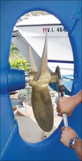 Propspeed, a kit that includes a two-part etching primer and silicone-based top coat, prevents marine growth from attaching to the coated surface by being super slick. To keep that slick quality, the prop needs to see regular use.