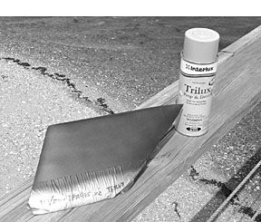 Trilux, a copolymer ablative paint, is a post-TBT solution from Interlux that can be used on any material, including aluminum. Different versions can be applied by brush, roller, or spray. We used the aerosol type in black.