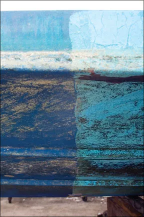 Four coats of barrier coat were rolled on using solvent-resistant foam rollers and vertical strokes. A chemical bond was maintained, no between-coat sanding was necessary, and each of the four layers was applied as soon as the previous coat was ready to overcoat. (Look for the full report in an upcoming issue.)