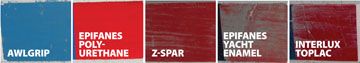 To quote from our last report: “1. If you want your hull white and you prefer an easy-to-use one-part paint, buy Interlux’s Toplac. 2. If you want a white hull and are willing to do the work needed with a longer-lasting, two-part urethane, use Interlux’s Interthane. [Interlux has since replaced Interthane Plus with a similar paint it calls Perfection.] 3. If you want a blue hull and prefer the easier one-part urethane, the choice is Epifanes’ Mono-Urethane. 4. If you want a blue hull with a two-part paint, Epifanes’ Poly-Urethane is preferred. 5. If you want to do your hull red with a one-part paint, don’t. Use Epifanes’ two-part Poly-Urethane.”