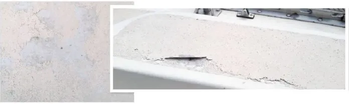 Niebur explained, It failed even faster than the first application. Already early in this summer, I noticed the tell-tale flakes of a failing Durabak coating. Now, the coating comes off in huge patches. … The failure mode is the same as before: While the first coat adheres tenaciously to the original gelcoat, it is the subsequent layers of Durabak that separate from the lower ones. … The second batch of Durabak may have been perfectly fine, but it was applied over a layer that did not allow any bonding.