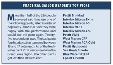 As it turns out, the preferences in our reader survey closely match the general trends observed by major marine paint manufacturers Pettit and lnterlux. Budget-priced ablative paints had a more loyal following in the north, while sailors in Florida and Southern California, where sailing is year-round, gravitated toward copper-loaded modified epoxies like Trinidad and Ultra.