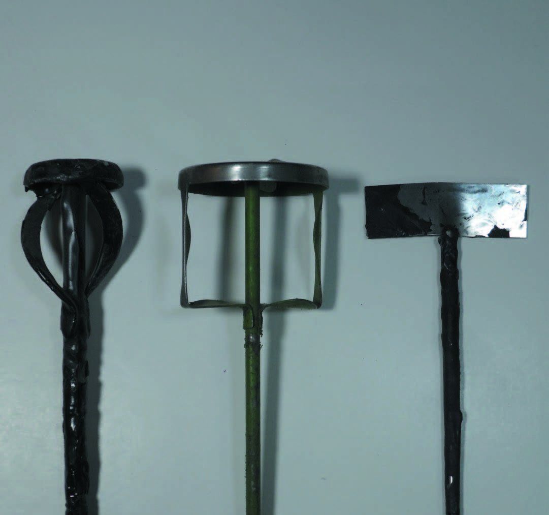 The solution is something larger and more open. Five-gallon mixers move more liquid at the relatively low RPMs typical of a cordless drill. They better clean the bottom of the can and they don’t clog. You can improve them for bottom paint by gently bending the blades on the bottom and sides to a slightly greater angle. Even better is the simple laboratory axial flow impeller. These don’t clog and will mix the most stubborn can in two minutes.