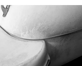 When the topsides are dry, inspect the surface for residual salt or mineral stains. These will be obvious on dark surfaces, less so on white ones. It is critical to remove these deposits before going further. If you don’t get them off, the surface will look dull and spotty, even after polishing and waxing. If you wax over salt deposits, they will be even harder to remove in the future.