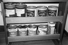 The one drawback we have found with Goldspar—as with all high-quality, oil-based varnishes—is that it is relatively slow-drying for purposes of sanding and recoating. The surface sets up quickly enough to resist dust and water, but remains soft for days. We have found it necessary to wait a minimum of three days after a full, unthinned coat of varnish for the surface to get hard enough to sand reasonably easily. This slows down buildup coats on new work.