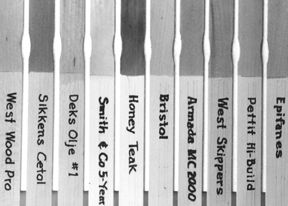 Among those out there now is one that brings together all the prior tests of oils, varnishes, pigmented stains and sealers. It pits the best of the 10 individual teak “treatments” in a single test intended to give boatowners a choice of how much effort they want to expend to keep their teak looking good. The products, as in the top-to-bottom order on the chart on pages 10-11, are three varnishes, Epifanes Woodfinish, Pettit Hi-Build and West Skipper; four synthetics, Armada MC 2000, Bristol Finish, Honey Teak, and Smith & Co. 5-Year Clear; one oil, Deks Olje; and two pigmented stains, Sikkens Cetol and West WoodPro.