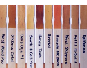 Two top-flight pigmented stains were included. They are Sikkens Cetol and West Marine’s WoodPro, a blatant (but cheaper) Cetol knock-off.