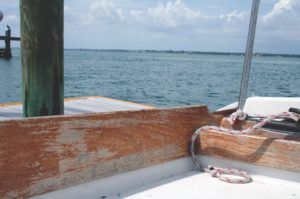 In the fall of 2010, testers applied three coats of Caspian Clear PolyWhey to the coamings and companionway trim on the Cape Dory, which is sailed several times a week and lives on a mooring in Sarasota Bay, Fla. We also applied Cetol Natural to the boat’s toerail, and previously had applied it to the tiller and forward hatch trim.