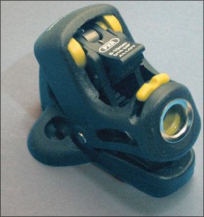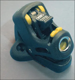 At the head of the class was the Spinlock PXR…actually, the PXR is in a class of its own. Against Doomsday, it produced a barely noticeable neck and no fuzz on the test line after 1,000 cycles, making it the kindest cleat tested. And unlike the more conventional cams, the Spinlock has a fixed line-entry lead on the bottom and a pivoting exit lead on the top. The top cam releases completely when the tail of the line is lifted to pivot the exit lead upward and re-engages when the tail is pulled downward to flip the exit lead down. You can also operate the release by stepping on the top of the body.