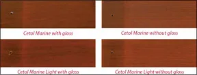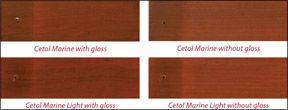 The Cetol panels, for the most part, were still going strong after 12 months, outlasting similar coatings from TeaQua, Epifanes, Deks Olje, Le Tonkinois, and West Marine. The test panels coated with Interlux Sikkens Cetol Marine and a gloss topcoat and Marine Light with a gloss overcoat both rated very well. The coating integrity was flawless and the gloss unchanged; however, these finishes initially were “muddy” and have retained that quality.