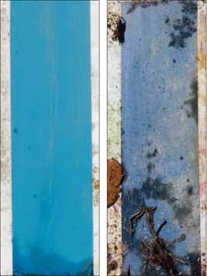Only three paints allowed hard growth — and that growth was sparse, just some specks. There were no full-grown barnacles. So the final score usually came down to an evaluation of the amount of slime on each panel section. The paints that were absolutely clean — they looked like they had just been painted — were given Excellent ratings. Those with any hard growth were given a Poor rating. We weeded out the Fair and Good paints by comparing the amount of slime on the panels.