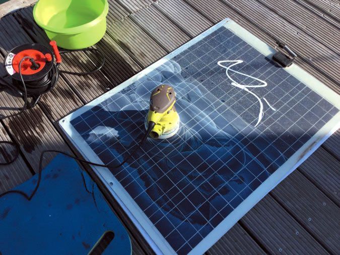 In the cases we’ve heard of, panels typically lost 50 to 80 percent of their output capacity. The semi-rigid panel manufacturer Solbian, on the other hand, allows hand or low-speed machine polishing, but their panels are more substantial than most; we can only advise extreme caution.