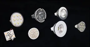 Doctor LED offers a large selection of quality LED lights. The company sent three replacement modules that are built into round reflectors with the pins in the back. Each has one LED with a glass lens over it for protection. The small MR-11, 1-watt unit (part no. 8001238) gives a fairly bright, warm light with a definite spotlight effect. It is compact, draws only 0.11 amps, and will serve well as a narrow-beam reading light. The MR-16, 1-watt (part no. 8001290) is slightly larger, produces a warm, bright light over a wider area, but still has a well-defined spot. The MR-16, 3-watt light (part no. 8001399) is even brighter, but it protruded from the fixture and drew more amps.