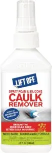 Motsenbacker’s Lift-Off Silicone Caulk and Foam Spray Remover comes in a spray bottle, but it is a gelled liquid that must be spread around with a brush or plastic spreader. It was more effective than xylene and acetone when cleaning the aluminum hatch frame, but was completely ineffective on textured fiberglass.