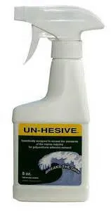 Un-Hesive is advertised to be specifically formulated to release the bond of extremely potent polyurethane adhesive sealants such as 3M 5200 and Sikaflex. Makers claim it breaks the grip of these polyurethane adhesives without material breakdown. It is meant to be sprayed on, and the cured sealant is to be easily peeled off. Our own experience fell short of expectations.