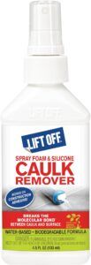 Motsenbacker’s Lift-Off Silicone Caulk and Foam Spray Remover comes in a spray bottle, but it is a gelled liquid that must be spread around with a brush or plastic spreader. It was more effective than xylene and acetone when cleaning the aluminum hatch frame, but was completely ineffective on textured fiberglass.