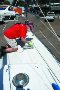 Instead of chlorine, a citrus based “green” surfactant/degreaser could also do the trick. Tech editor Drew Frye’s excellent summary of boat cleaning chemistry (See PS April 2017, “The One Bucket Cleaning Kit”) includes a link to the recipe for our favorite cleaners, Formula A and Formula B, both very cheap DIY solutions. Former editor, Nick Nicholson liked Simple Green cleaner, which he used be for every buffing job (see Inside PS Blog “Waxing and Polishing Your Boat.”)