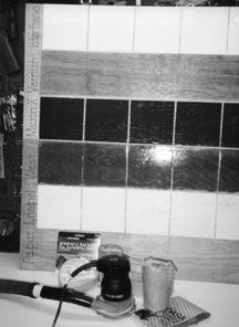 After all the measuring, taping, coating, re-taping and recoating, the finished plywood panel (with 60 sections) was set aside for 10 days—which is a “safe” time to allow paint and varnish to harden.