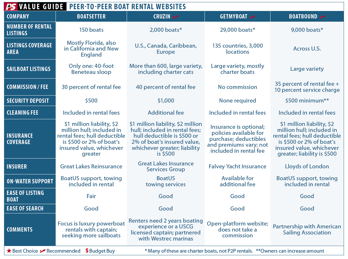 P2P rentals offer boat-less sailors a great way to get on the water inexpensively, without the commitment of a boat timeshare club. And boat owners who seldom use their boats can capitalize on the down time to help defray the costs of ownership. To be sure, there are risks involved on both sides of the deal, so its imperative that you know what youre getting into before listing on or renting through one of these sites. Read the fine print. Clarify any vague information. Be sure youre dealing with a qualified renter or a responsible boat owner.