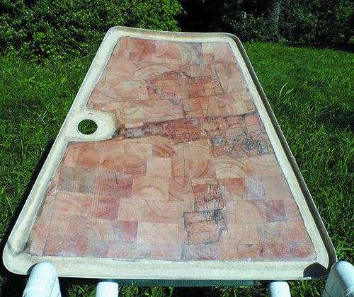 If it is undamaged and you are working from the top side, save this for later reinstallation. It will preserve the non-skid pattern and smooth curvature in the corners. Even when you are careful, thin skins are often destroyed during removal process, which means you’ll have to laminate a new one—something to consider when deciding which side to work from.