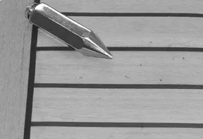 We dropped heavy objects onto each deck—a plumb bob, from a height of six feet, to be specific—in order to evaluate dent resistance. (Natural teak decks are sometimes subjected to this kind of damage.) We repeated this after chilling the deck down to below-freezing temperatures, to see if embrittlement occurred; we tried it again at 150° F or so, a temperature that a deck can reach under the tropical sun. While we were at it, we checked to see how the heated deck felt to bare skin.