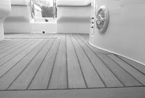 While the product is made in interior and exterior grades, we tested only the exterior version. According to the manufacturer, the exterior decking material can be sealed, if desired, with a polyurethane coating, but it’s not necessary. An uncoated deck will absorb very little moisture, and provide superior traction. A coated deck will resist staining better, and be easier to clean, but won’t provide as much traction. A UV inhibitor in the coating would obviously be of benefit, but coating the deck would bring you back into the endless cycle of periodic refinishing—which teak decking is supposed to eliminate.