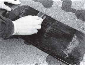 -When the surface is a uniform, wet, muddy brown, apply the second part (the acid), spreading with a clean bristle brush.