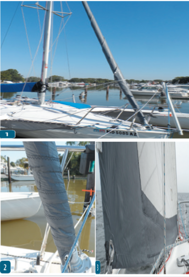 Whats that they say about the 10-foot paint job? Sure, if you look closely, it is clear that something is different with the genoa aboard Tech Editor Drew Fryes F-24 Corsair. Battleship gray is not a common color for the suncover on a recreational sailboat, and the sheen is more reflective than normal. But unless you are aboard the boat, the laminate sail looks like any other genoa with a stitched on suncover. The original suncover exists, only now it is painted.