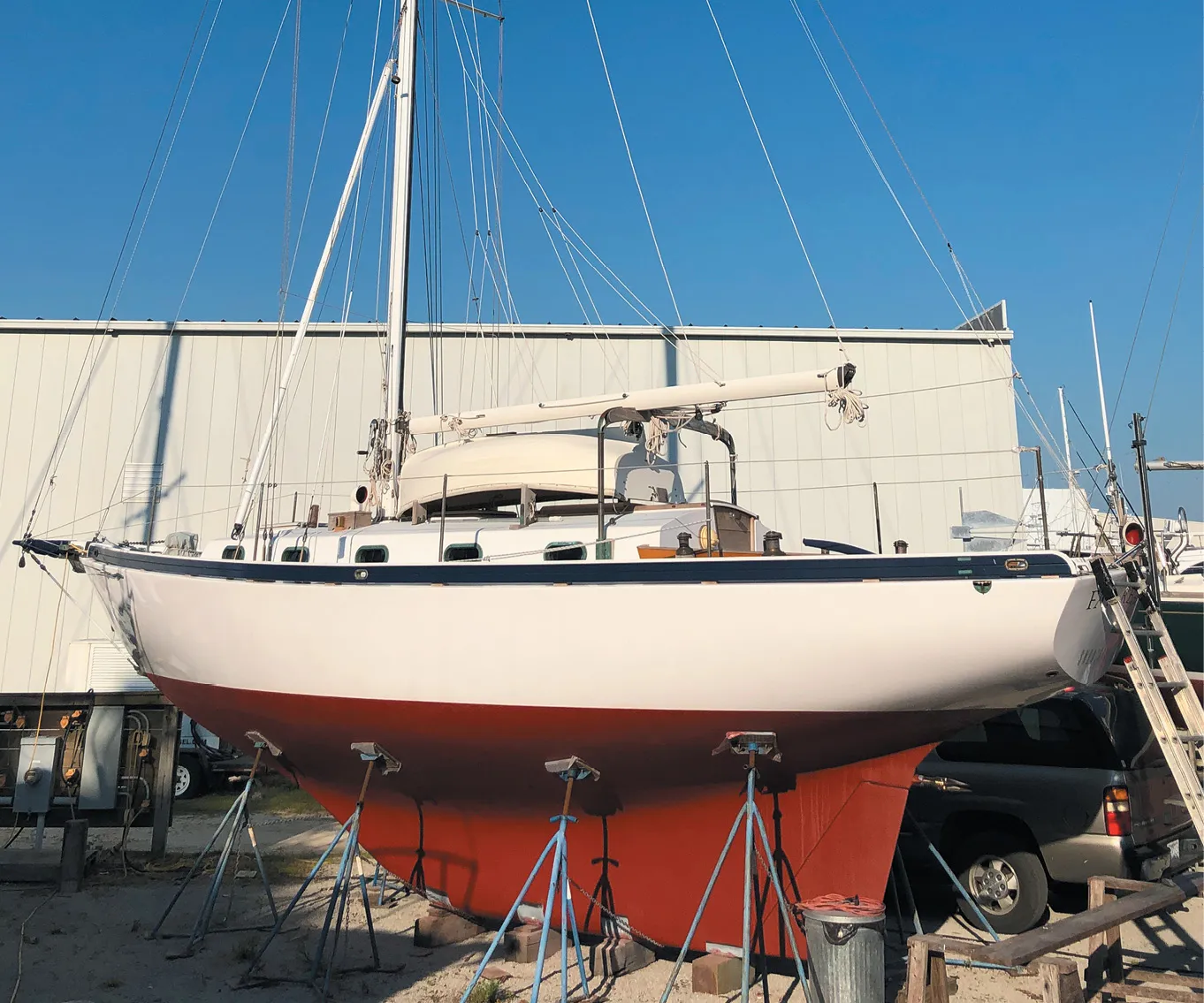 As part of the rebuild of my Cape Dory 36 Far Reach (see “Rebuilding a CD 36,” PS Nov 2022 to PS Mar 2023), I had sanded off all the old bottom paint (there was no barrier coat then) applied new barrier coat and antifouling paint. Eleven years later, when I repowered (see “Marine Diesel Repower from Scratch,” PS April–May 2023), I decided it was a good time to strip the antifouling paint down to the barrier coat and reapply fresh barrier coat and antifouling paint before we relaunched the boat.