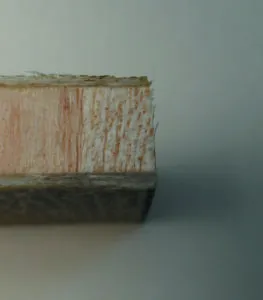 - This panel is no longer wet, but torn fibers indicate past exposure.